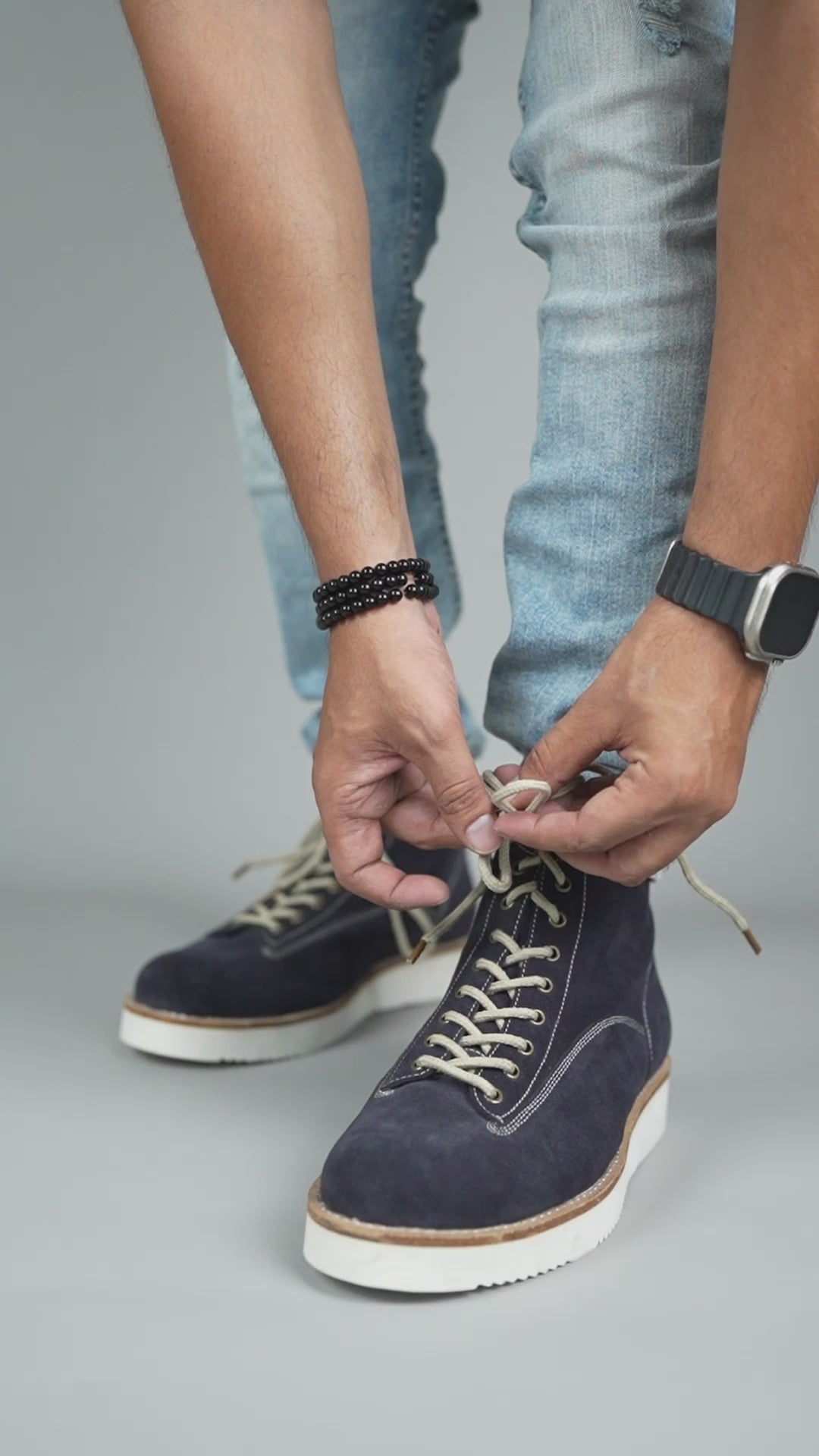 Crafted from premium blue suede leather, these boots are designed for both style and comfort. The lace-up closure ensures a secure fit, while the distinctive white sole adds a modern touch.